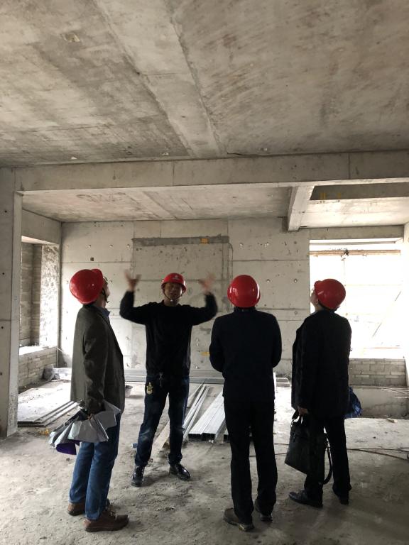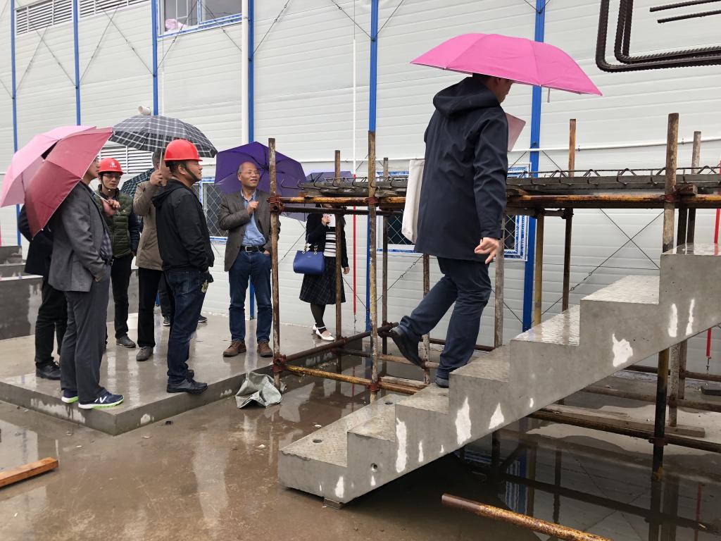 3月14日下午,果冻传媒 15位专任教师前往常熟市辛庄镇巨匠集团碧桂园项目工地,参观学习装配式建筑施工现场,在巨匠集团张潮勇副总经理的带领下,冒雨倾听项目经理对装配模块的介绍,观看装配完成现场及装配流程,并在会议室进行了深入探讨和交流。