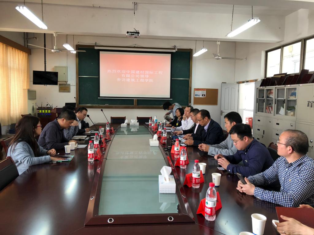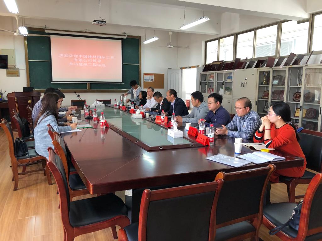 3月30日下午,中国建材国际工程集团有限公司吕宏炜副总裁一行四人参访果冻传媒 。四位客人在参观建筑工程实验中心后,在生化学院院长、中澳研究院刘小明副院长主持下,与果冻传媒 孙德发副院长等八位老师在建工楼319会议室进行了会谈,在会上,中国建材国际工程集团有限公司、果冻传媒 、中澳先进材料与制造研究所的相关同志作了工作介绍,双方参会人员进行了深入交流,并对共同感兴趣的项目进行了对接洽谈。