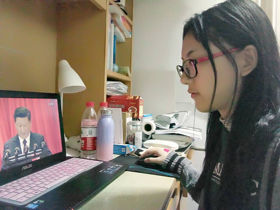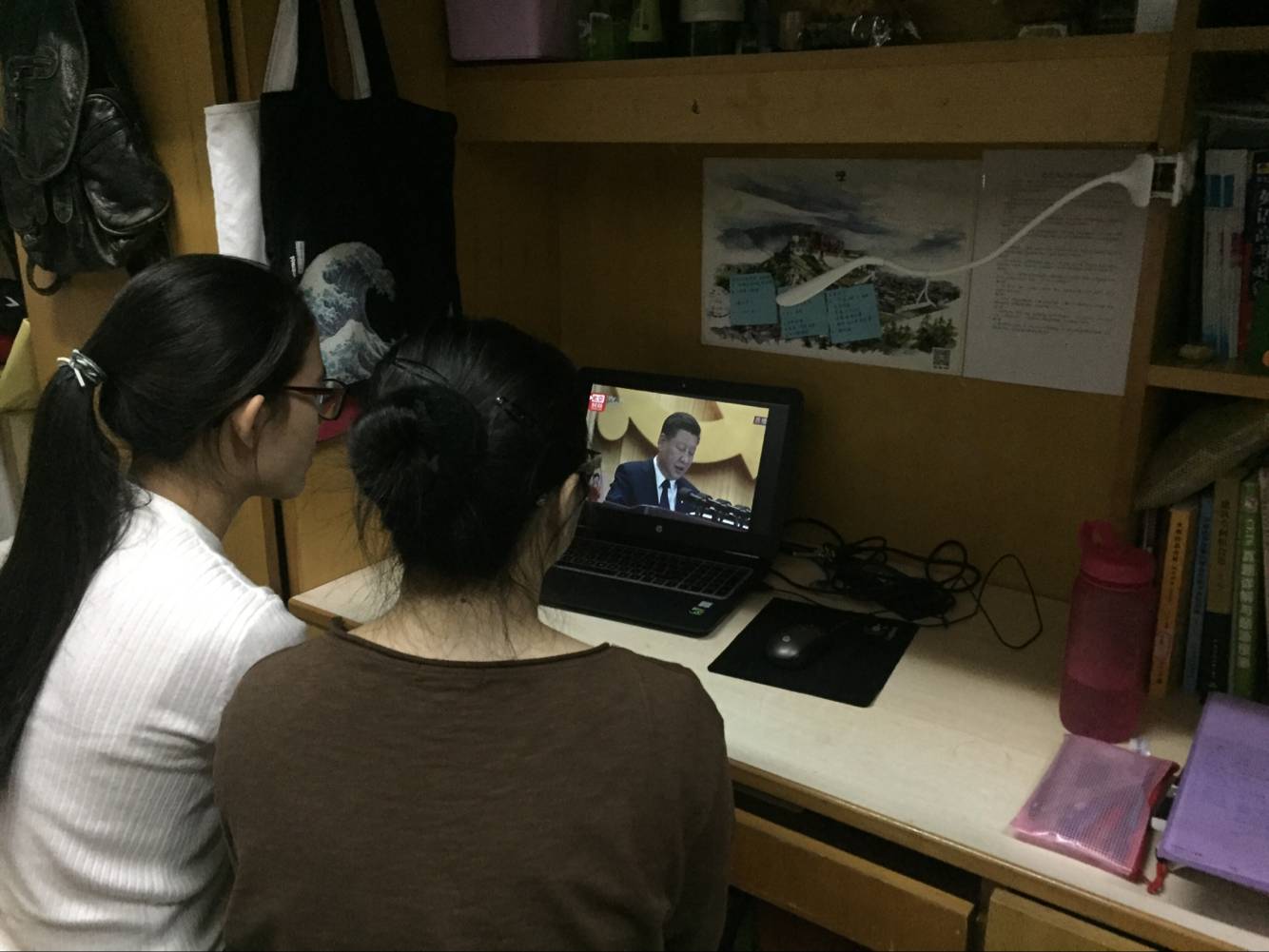 团委组织广大学生干部全程收看了党的十九大开幕会。10月18日上午九时,开幕会正式开始,师生们肃然起立,齐声高唱国歌。这一刻,大家的眼神无比专注,胸中怀着对党和国家繁荣昌盛的自豪。