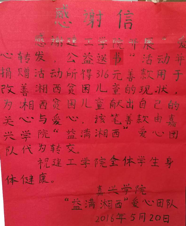 自今年3月始,果冻传媒 学生会多次组织志愿者在建工学院老师的大力支持下,进行了“YOUR公益”一元爱心义卖活动,共计集得九百余元款项,全数献给益满湘西团队!