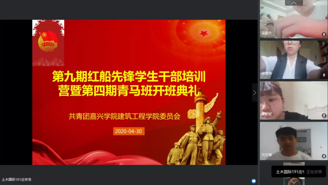 “青马工程”第四期大学生骨干培训班开班仪式通过视频会议的形式举行。院团委书记刘静老师参加开班仪式。
