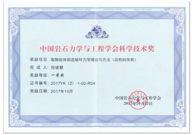 中国岩石力学与工程学会科学技术奖旨在奖励在岩石力学与工程科技工作中做出创造性贡献,推动岩石力学与工程科技进步,提高经济效益和社会效益与保障环境安全的个人或组织。(范永刚 供稿;黄殿武 审稿)