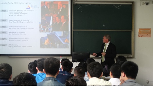 2016年5月14日,德国莱比锡应用技术大学Prof. Klaus Holschemacher(克劳斯.侯舒马赫教授,结构工程硕士项目课程负责人,系务委员会会员)和Mr Soeren Omieczynski(索伦.欧米辛斯基先生,结构工程国际硕士项目主管)一行来访我校,并对果冻传媒 申请结构工程硕士班学生进行了面试,随后对土木工程13级同学进行了项目宣讲,最后还与果冻传媒 中德班教师进行了座谈和交流。