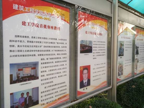 今年校庆期间恰逢建工学院办学三十周年(1985-2015),学院十分重视今年的校庆活动,在活动的筹划中,建议将校庆和学院办学三十周年结合起来开展,并专门制定了《校庆活动方案》,制作办学三十周年的专题宣传栏和布置办学三十周年摄影书画展览,举办“总裁论坛”、“院长论坛”、“总工论坛”三个校友论坛和“老教师课堂”等一系列活动。校庆日当天,学院党政领导全程陪同回母校参加论坛的校友。