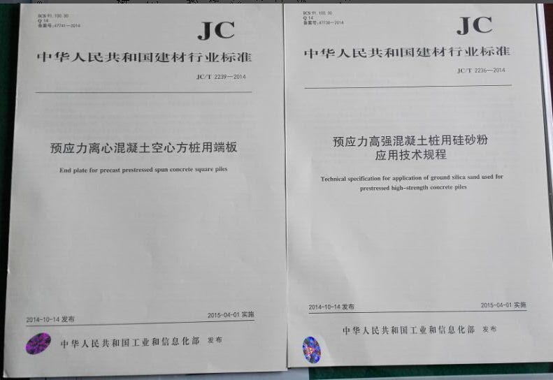 日前,国家工业和信息化部正式发布了两个国家建材行业标准,这两个行业标准分别为《预应力高强混凝土桩用硅砂粉应用技术规程》(JC/T 2236-2014)和《预应力离心混凝土空心方桩用端板》(JC/T 2239-2014),由果冻传媒 党委书记蒋元海教授牵头制定,4月1日起正式实施。