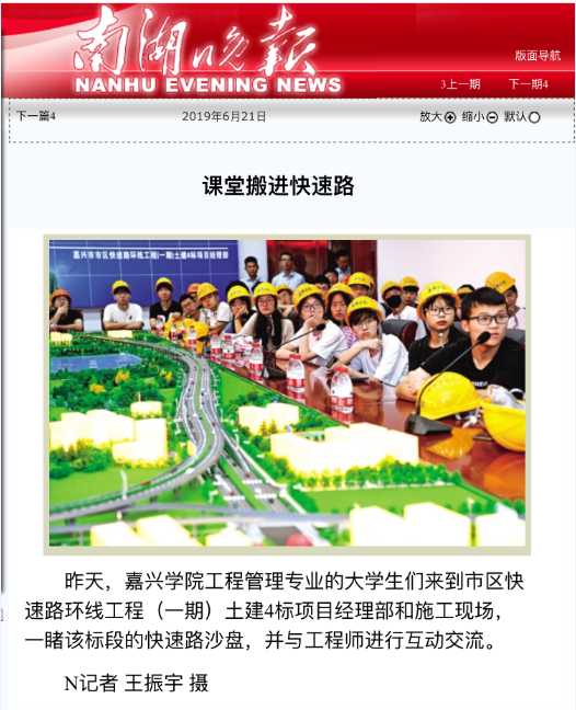 “课堂搬进工地”实习活动受到嘉兴主流媒体“南湖晚报”关注和报道。(宋宇名 供稿;孙德发 审稿)