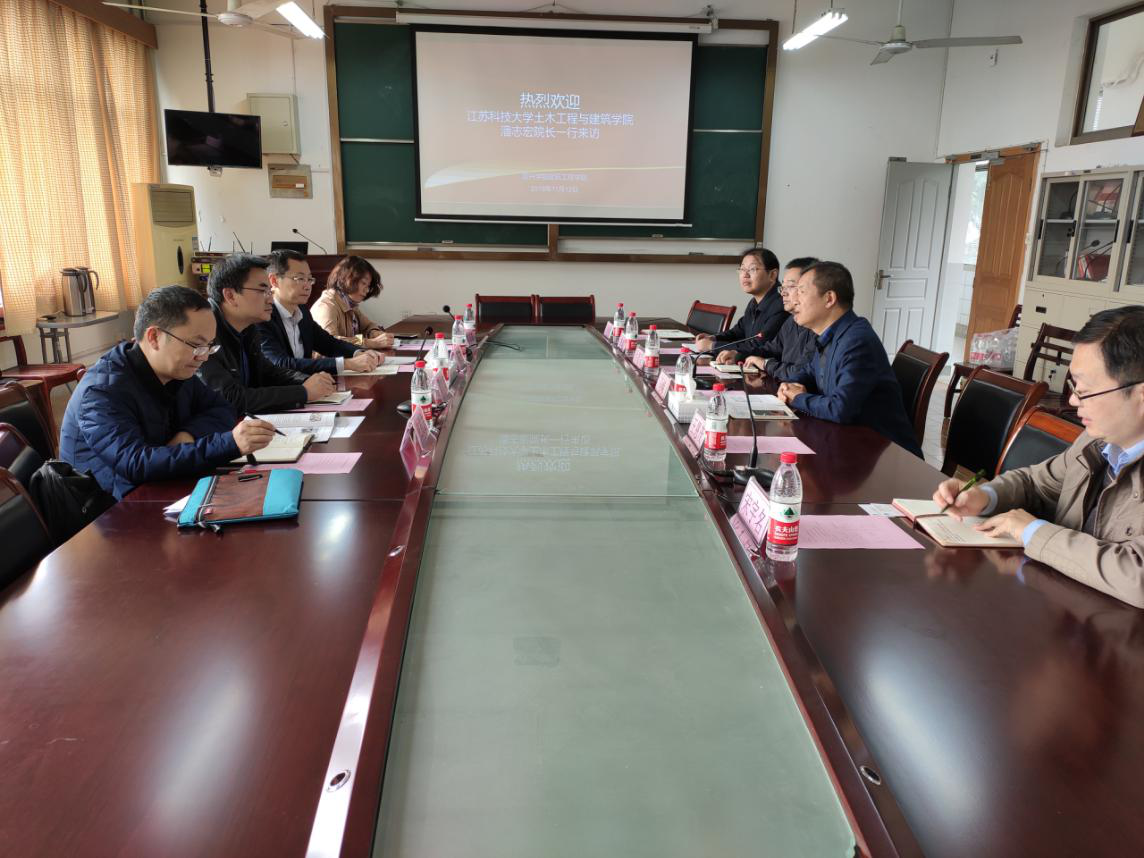 11月12日上午,江苏科技大学土木工程与建筑学院潘志宏院长一行4人来建工学院考察。建工学院院长马嵘、副院长孙德发和工程管理系、实验中心、院办负责人参加座谈会。