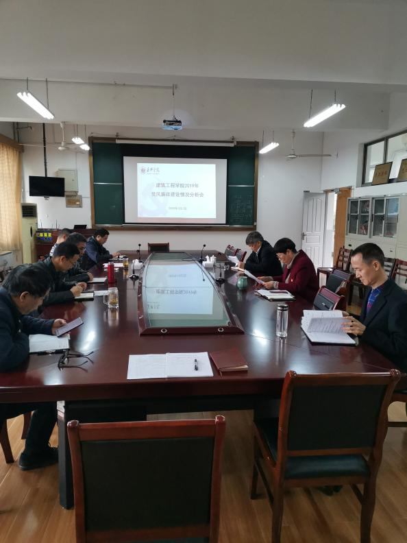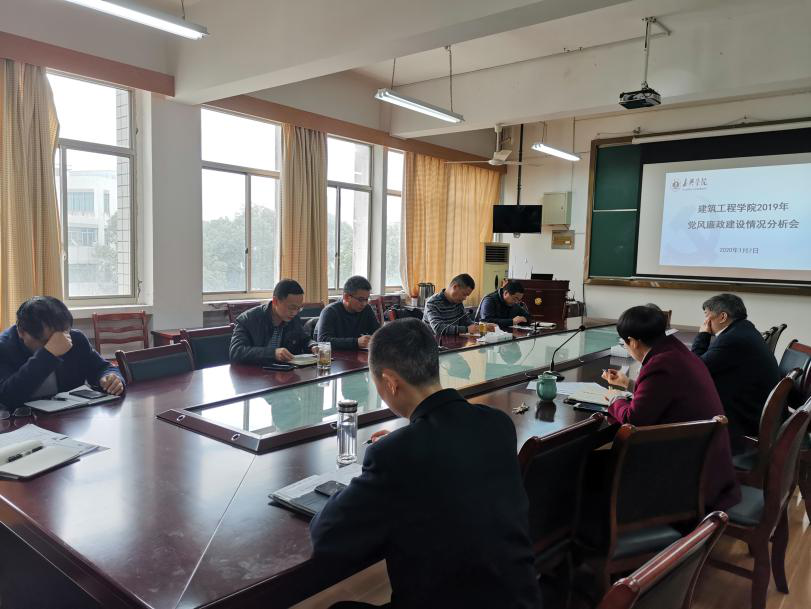2020年1月7日上午,建工学院党委召开2019年党风廉政建设情况分析会。校党委副书记严从荃到会指导。分院党政领导班子、党委委员参加会议。分析会由院党委书记费锦红主持。