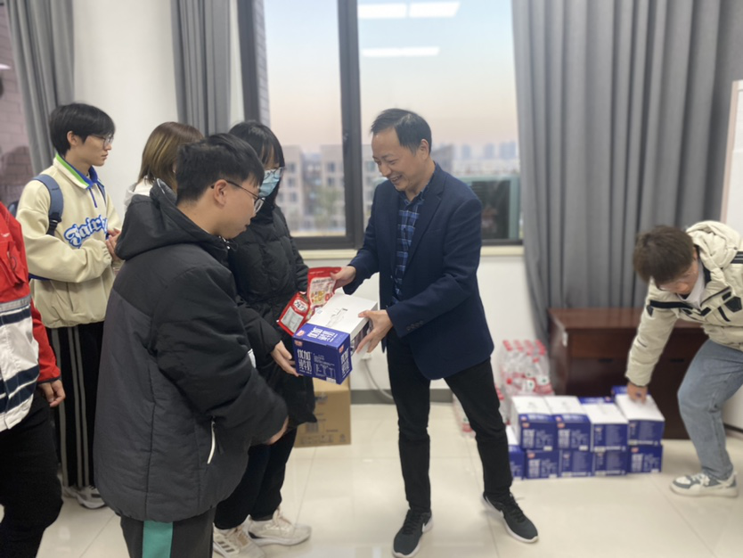 最后,学院领导为同学们发放考研慰问品,同学们深受鼓舞,表示会坚持到底、全力以赴,也纷纷表达了对学院的感谢!
