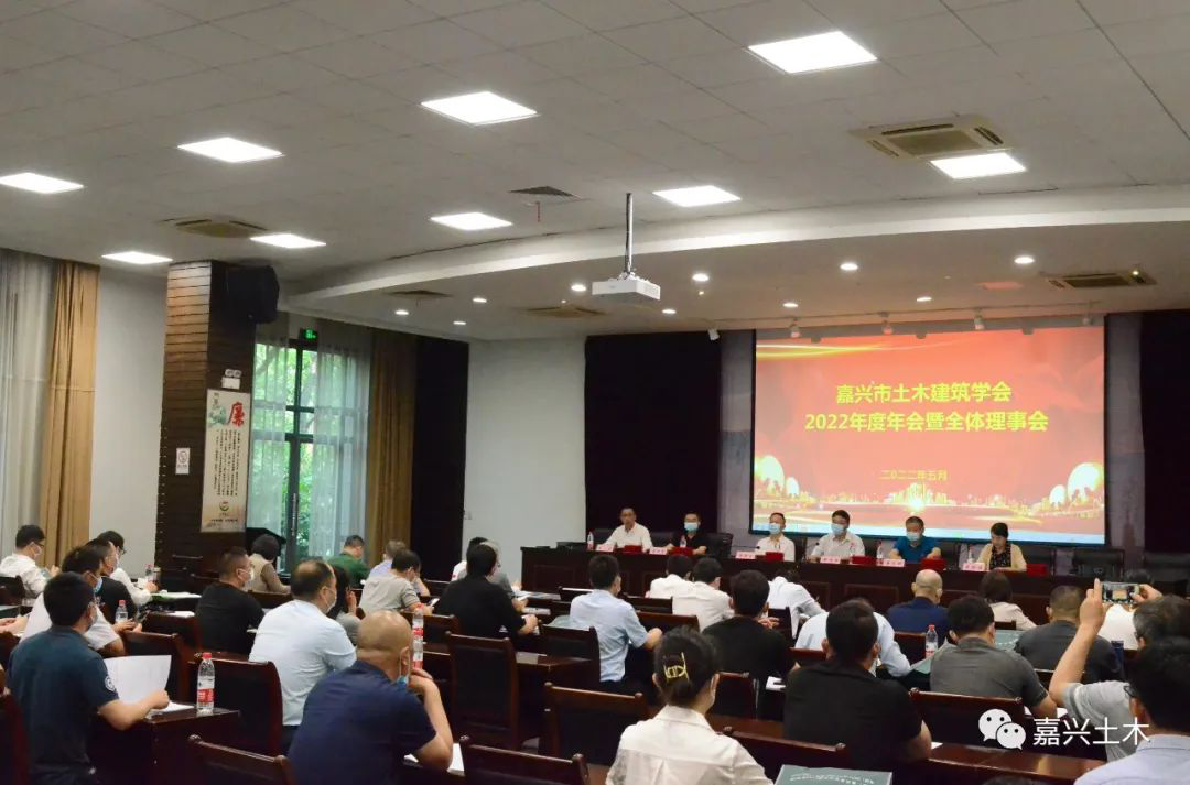 2022年5月27日下午,嘉兴市土木建筑学会2022年度年会暨全体理事会在嘉兴市建设局5号楼第二会议室举行。嘉兴市建设局副局长金洪良,嘉兴市社会组织综合党委专职副书记、嘉兴市社会组织总会常务副会长、原嘉兴市民政局社会组织管理局局长郑启忠,嘉兴市建管服务中心支委、总工程师汪向东和学会全体理事、监事、会员单位代表、先进集体和先进个人代表等90余人参加会议,会议由学会秘书长贾剑培主持。
