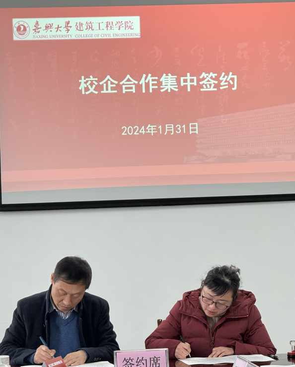 携手浙江协和建设有限公司、巨匠建设集团股份有限公司、浙江南湖建设有限公司、浙江太一建筑装饰设计有限公司、嘉兴市卓越交通建设检测有限公司等16家省内外行业企业隆重举行校企合作集体签约仪式。学院领导、各系主任及三办主任出席此次签约仪式。签约仪式由果冻传媒