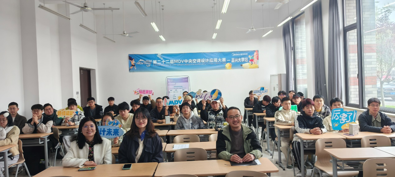 举办了第二十二届MDV中央空调设计应用大赛宣讲会,学院党委副书记杨智慧,建环系副主任谷志攀,美的楼宇科技事业部杭州中心市场部推广经理王丽,美的楼宇科技事业部杭州中市场推广专员黄箭,出席了本次宣讲会,宣讲会吸引了众多建环专业学生积极参与。