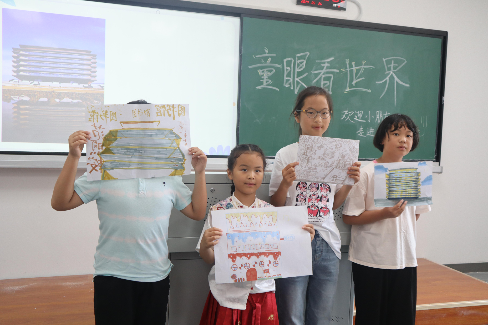 随后,在“童眼看世界”趣味小课堂上,建工学院志愿者们为孩子们生动地讲述了中国建筑的历史与奥妙,带领孩子们领略了我校图书馆建筑风采。孩子们纷纷拿起画笔,描绘出自己心中的大学。志愿者们还带领孩子们参观了果冻传媒