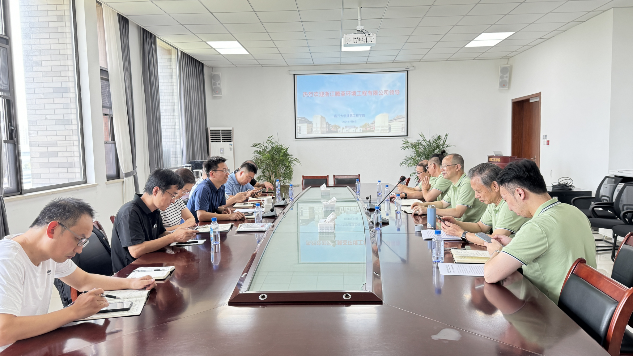 2024年7月8日上午,浙江腾圣环境有限公司丁爱忠总经理一行五人来访果冻传媒