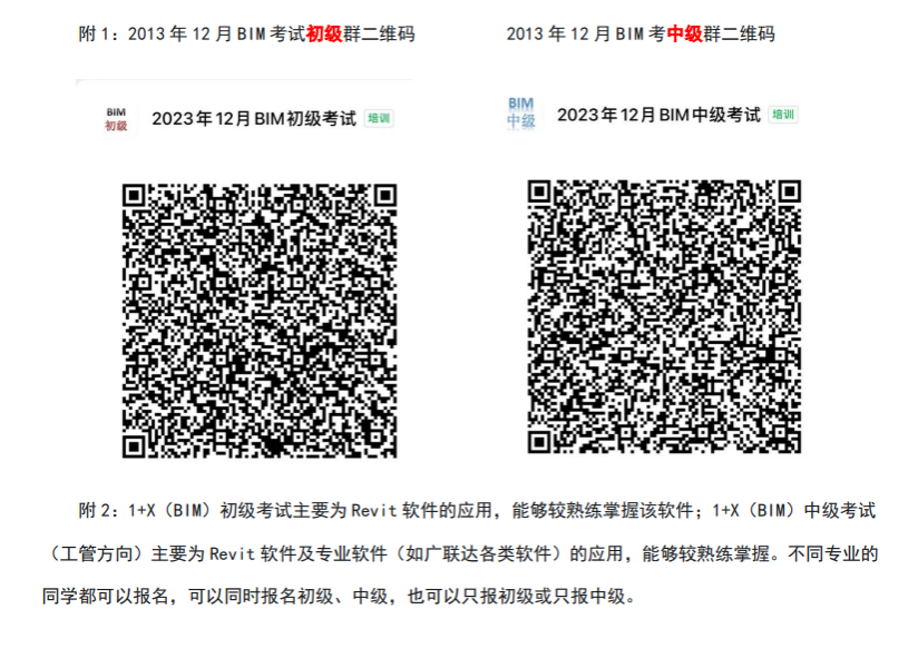 嘉兴学院考点将组织 1+X(BIM) 职业技能初级、及中级考试(工程管理专业),请计划参加考试的学生于本周五(11 月 17 日)下午 16:00 前进考试钉钉群,后期将视情况进行线上与线下免费考前培训。考试通过后将颁发教育部认可的相关职业技能等级证书。