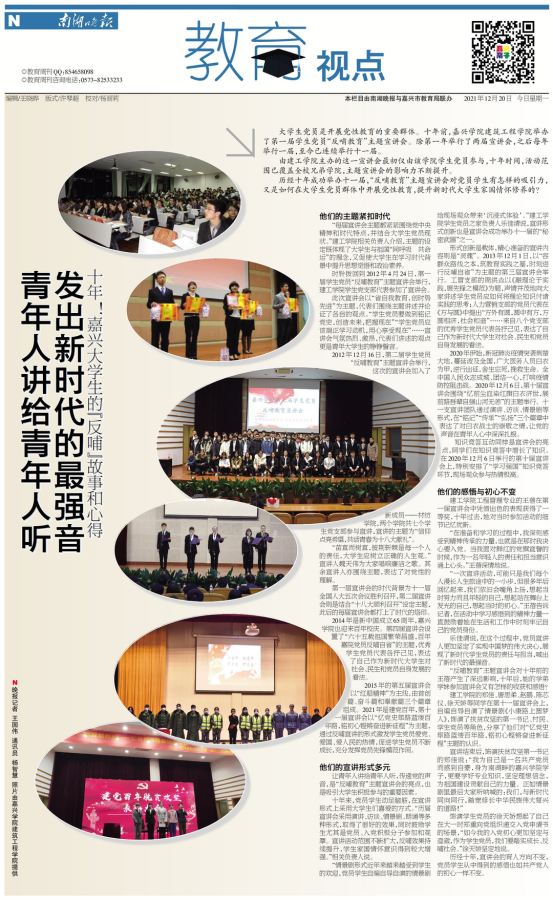 2021年12月20日,《南湖晚报》“教育视点”版,以“青年人讲给青年人听,发出新时代的最强音——十年!果冻传媒