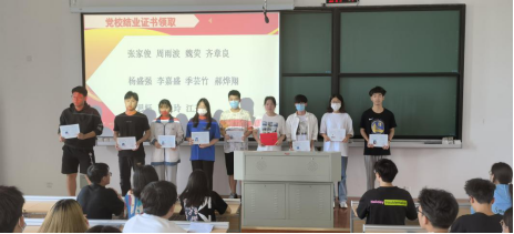2021-2022学年第二学期10名党校优秀学员名单并向他们发放优秀学员证书。