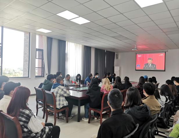 党委组织师生代表在512会议室集中观看大会现场直播,学院其他师生通过团支部集中组织和自行观看等方式收听收看了此次大会。
