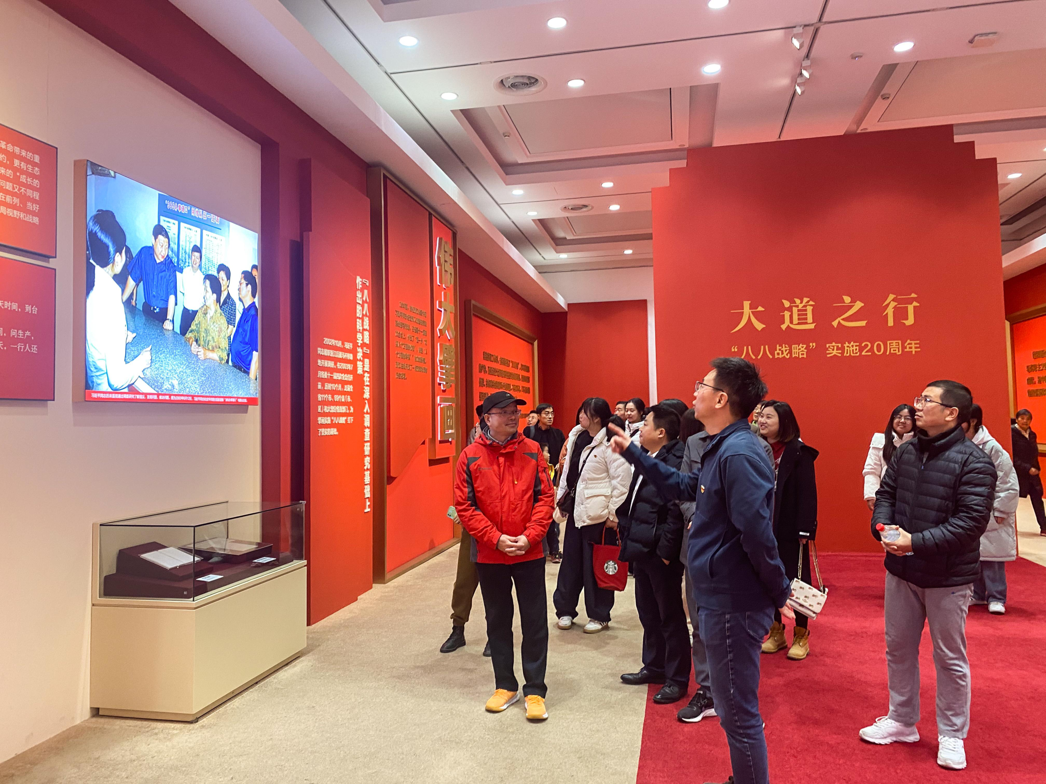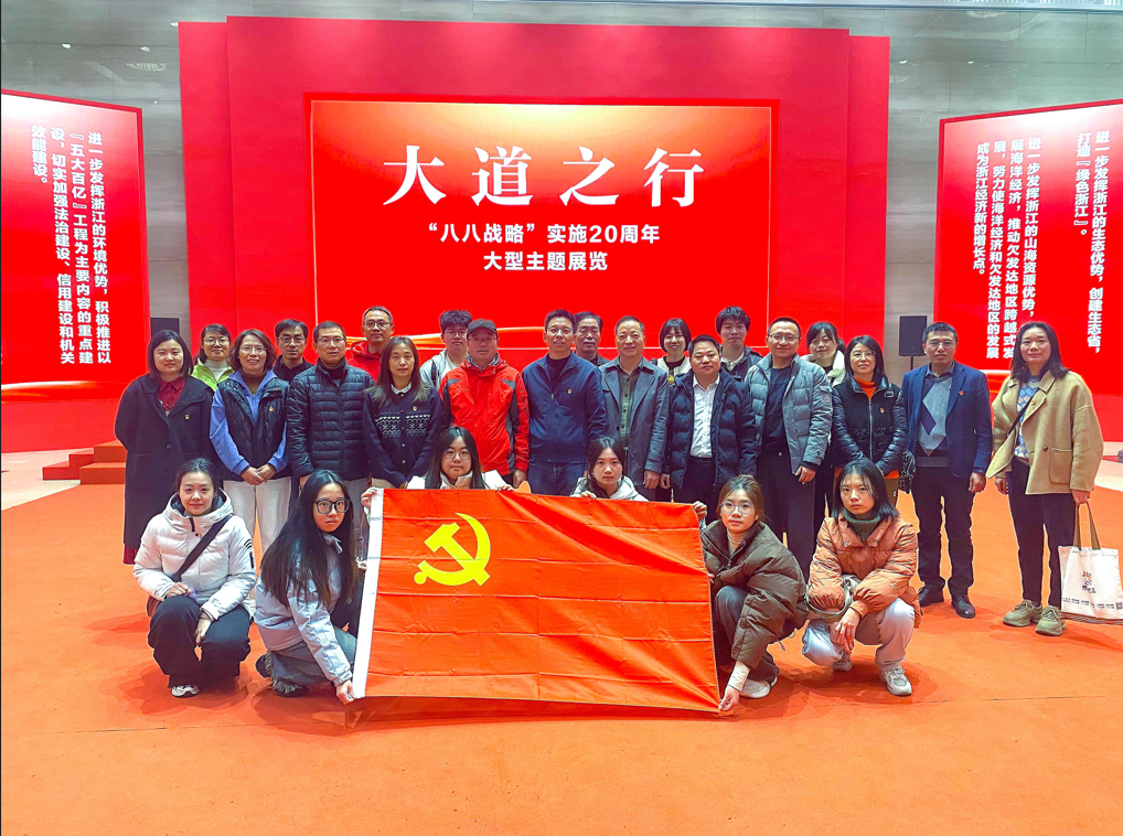 浙江展览馆,全体人员参观了大道之行——“八八战略”主题展览。“八八战略”是习近平同志给浙江倾情擘画、量身定做的总纲领总遵循,是省域发展的全面规划和顶层设计。展览分为伟大擘画、精彩蝶变、勇立潮头、共谱华章等四个篇章,生动展示习近平新时代中国特色社会主义思想在浙江的实践探索历程,立体呈现在“八八战略”指引下浙江全领域各方面发生的精彩蝶变。大家在参观过程中认真观看,不时驻足交流,进一步了解了“八八战略”在浙江的提出、实施及其重大意义,在“循迹溯源”中现场感受习近平总书记给浙江留下的宝贵思想财富、精神财富和实践成果。大家纷纷表示,要在今后的学习工作中进一步把“八八战略”与学思践悟习近平新时代中国特色社会主义思想贯通起来,以更加昂扬的精神状态、更加扎实的工作作风、更加有力的工作举措推进学院各项工作高质量发展。