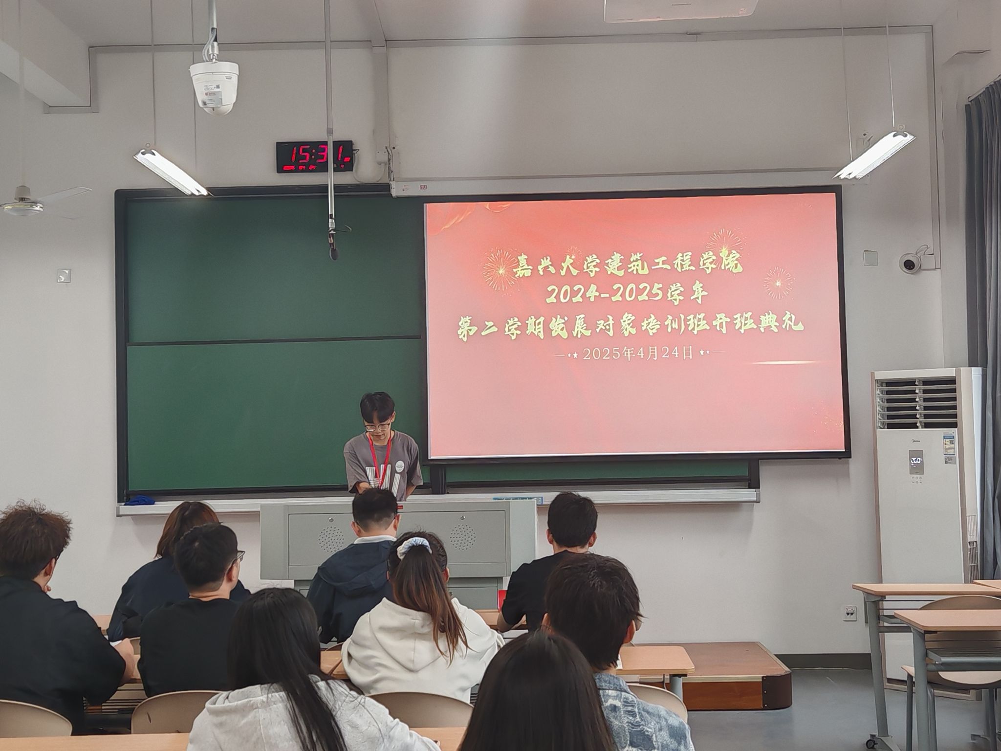 2024-2025学年第二学期发展对象培训班开班典礼在兴德楼北楼210教室顺利举行。典礼由学院学生党员之家理论实践部成员王刚主持。