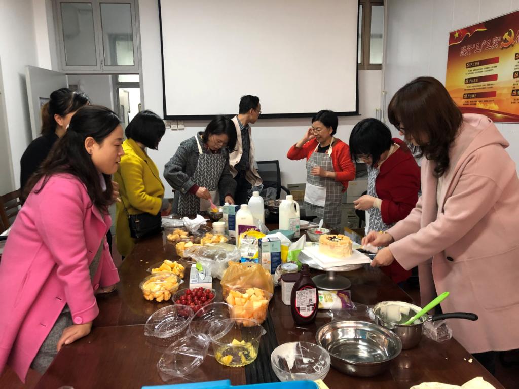 3月28日星期四中午12:30开始,果冻传媒 204会议室就散发出一阵阵蛋糕和水果的芬芳,女教师们围着围裙进进出出,进到室内一看,十多位老师一起动手,正在进行蛋糕的制作和烘焙,利用此次难得的机会,几位教师中的“烘焙发烧友”手把手为同事作着演示,当每一个成品出炉时,必定会有成功的喜悦映在脸上,果冻传媒 分工会为了丰富教职工的校园文化生活,增强凝聚力释放女教师工作压力特别举办了这次学做生日蛋糕的女工活动,在活动过程中男教师们也尝到了女同胞们的手艺成果。(范永刚 供稿;王辉 审稿)