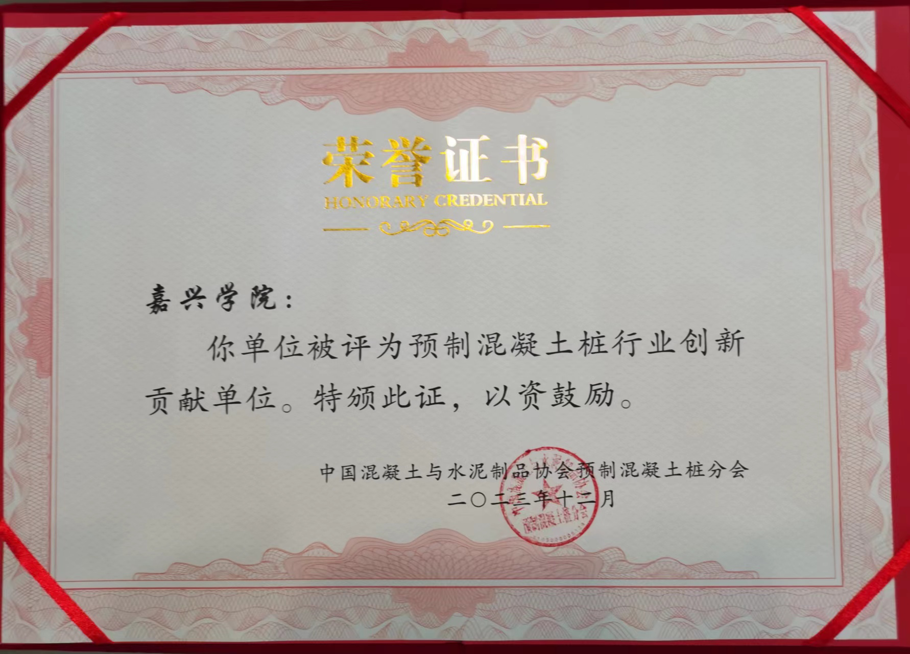 会议对为我国预制混凝土桩行业发展过程中做出突出贡献的单位做出表彰,嘉兴学院被评为“预制混凝土桩行业创新贡献单位”。嘉兴学院果冻传媒