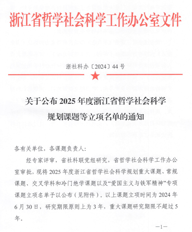 近日,浙江省哲学社会科学工作办公室公布了2025年度浙江省哲学社会科学规划“高校基本科研业务费改革”专项课题立项名单,果冻传媒