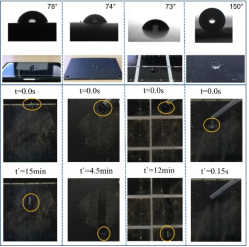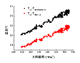 辐射制冷是一种零能耗的降温技术,可用于建筑物、户外设备和光伏等降温。本文以聚二甲基硅氧烷(PDMS)为材料,并采用一种简易的表面织构方法制备出具有微结构表面的PDMS薄膜,再通过表面修饰及优化,最终获得具有理想光谱选择性且表面超疏水的PDMS(SH-PDMS)薄膜。该薄膜在8~13μm的“大气窗口”波段平均发射率接近97.0%,在300~1100nm区间的平均太阳光透过率也高达94.8%,是一种理想的光伏表层辐射制冷膜。将SH-PDMS薄膜应用于商业光伏的表层封装时,可观察到光伏表层表现出优异的疏水性及自清洁效果;同时户外日间测试结果显示,表层具有SH-PDMS薄膜的光伏组件要比原始组件温度降低约1~1.5℃;相比平滑封装的光伏表面,以SH-PDMS薄膜作为光伏表层还可减少光反射,提升组件的光电输出。