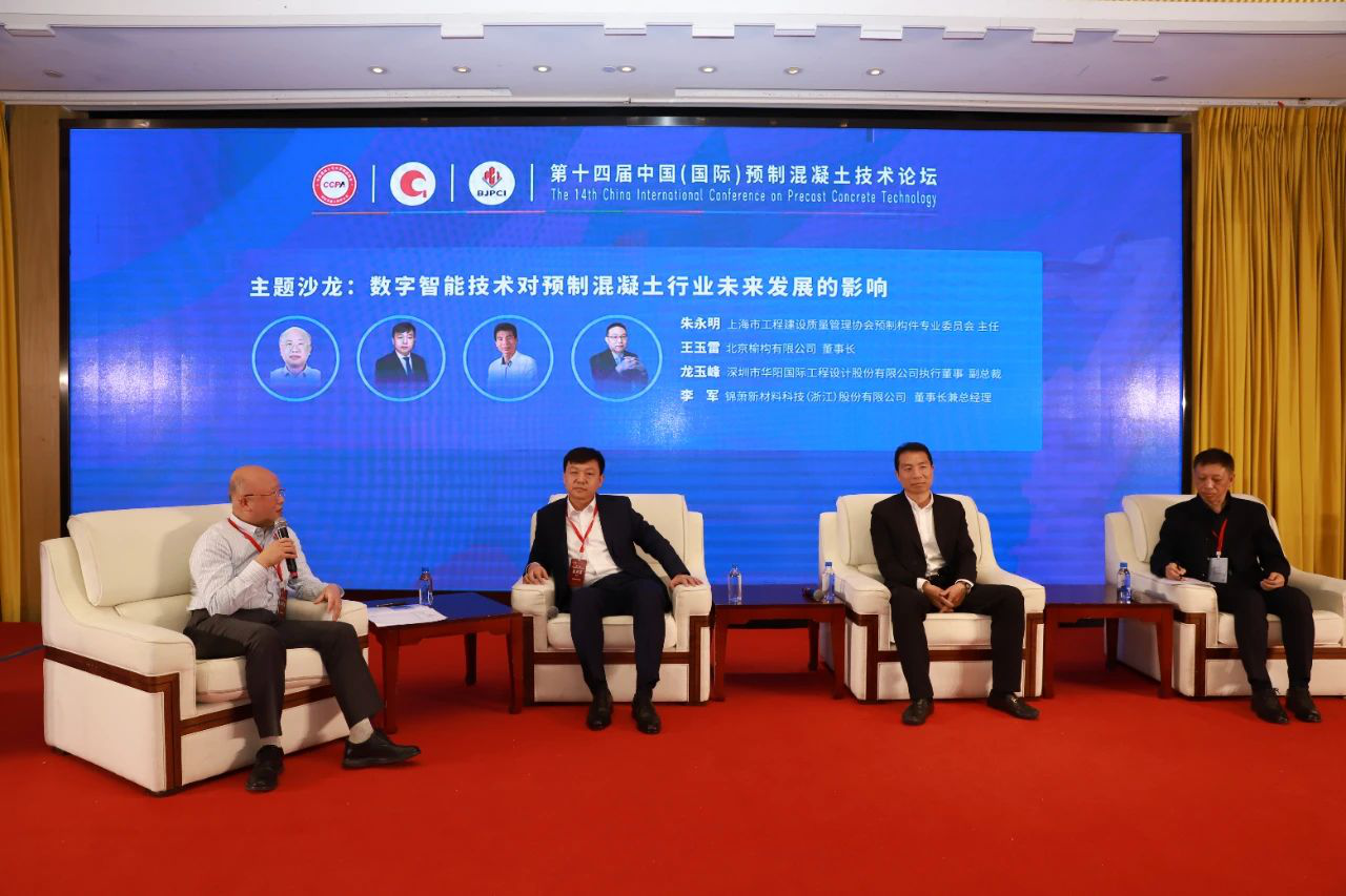 技术交流结束后,举办了主题沙龙,围绕“数字智能技术对预制混凝土行业未来发展的影响”这一主题,邀请朱永明、王玉雷、龙玉峰、王建忠进行了观点的分享,并与参会代表进行了现场交流。