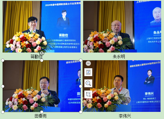 上午的大会主旨报告阶段,北京预制建筑工程研究院院长蒋勤俭、上海市工程建设质量管理协会预制构件专业委员会主任朱永明、中建科技集团有限公司副总工程师田春雨、上海天华建筑设计有限公司总工程师李伟兴、北京市建筑工程研究院有限责任公司总工程师李晨光分别以《2024 年预制混凝土行业发展报告》《上海市预制混凝土行业创新发展实践与探索》《模块化房屋技术体系与工程应用》《装配式混凝土建筑 BIM 协同设计及案例分析》《预制预应力框架与预应力墙抗震韧性技术新进展》为题作大会报告。