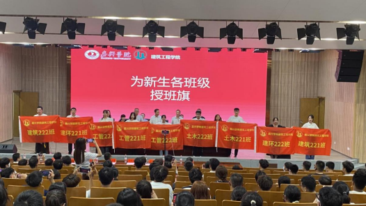 班旗是班级凝聚力的象征,更是班级战斗力的集中体现。典礼仪式上的授班旗仪式是责任感和仪式感的传递,九面旗帜代表了学院对同学们的殷切希望和祝福,引领每位同学在未来的学习生活中,扎实进取,勤奋学习,快乐成长,以自己的全面成长为班旗争光添彩。