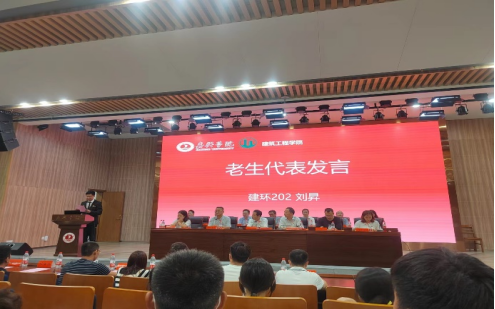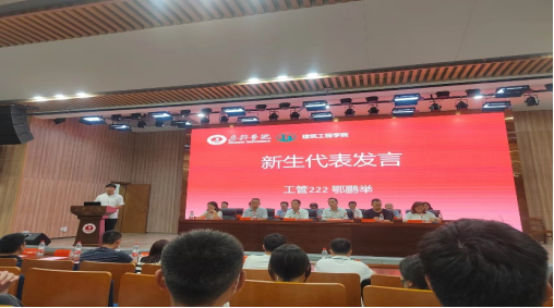 伴随着庄严的国歌声,开学典礼仪式正式拉开帷幕。工程管理222班鄂鹏举代表新生发言,他希望大家不虚度大学时光,珍惜大学时光。不负青春,不负韶华,勤奋学习、提升本领,报效祖国。建环202班刘昇学长希望学弟学妹们能够尽快进入学习生活状态,并思考“小目标”和“大方向”的问题,奋发向上,不负韶华。