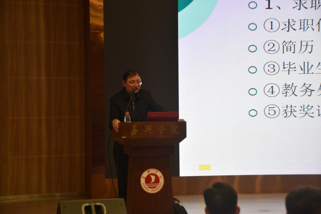 随后李嘉老师作了关于“如何制作个性简历,走出就业困境”的主题讲座。他指出,当前就业竞争激烈,毕业生要注重从自身出发,做好简历、面试等基础课。对此,他提出以下建议:一是简历制作要尽量精细化,内容要重点突出;二是要增强面试技巧,面试环节既要注重外在形象,又要掌握基本交流礼仪;三是转变就业观念,树立早就业、先就业、后择业的观念,调整就业预期;四是时刻关注就业动向,把握时间节点,争取更多就业机会。