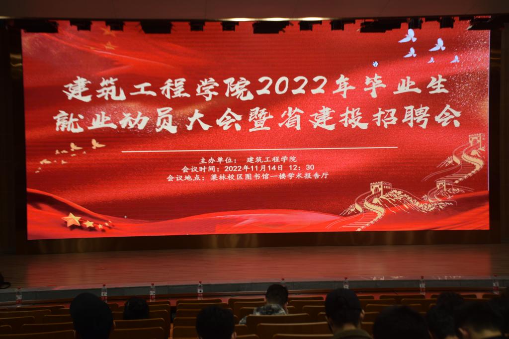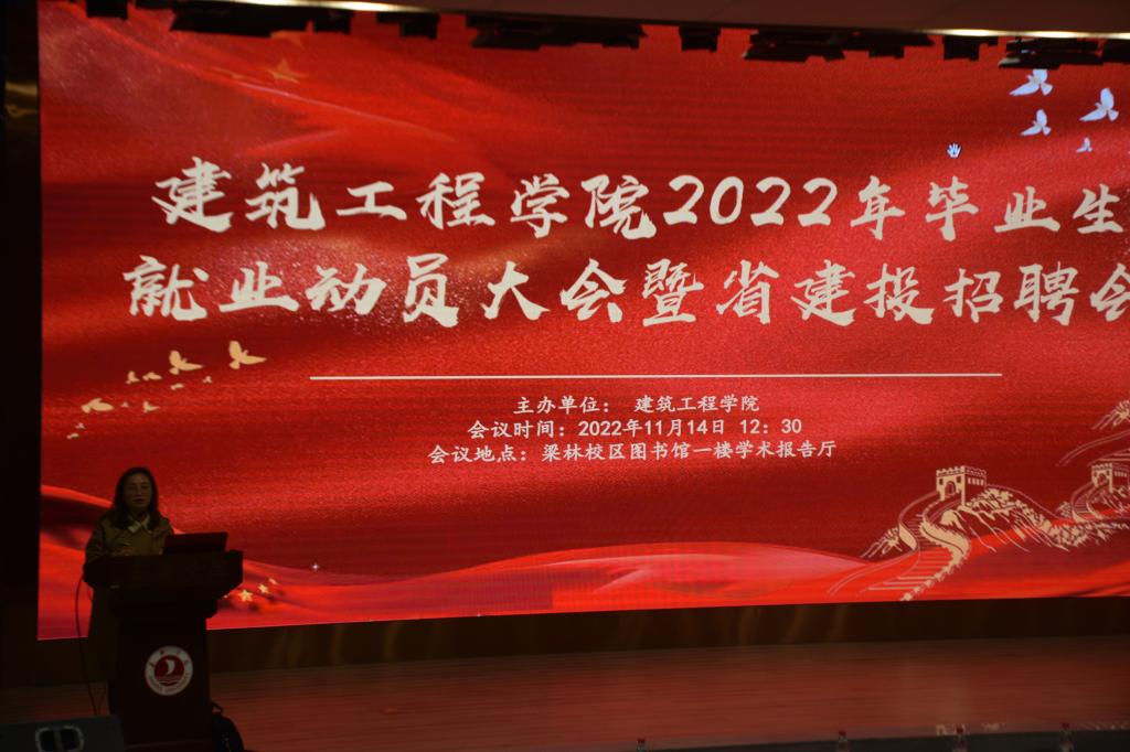 于梁林校区图书馆一楼学术报告厅召开毕业生就业动员大会。学院党委副书记杨智慧、南湖学院大学生职业训练协会指导教师李嘉、浙江省建设投资集团股份有限公司携各分公司负责人以及果冻传媒