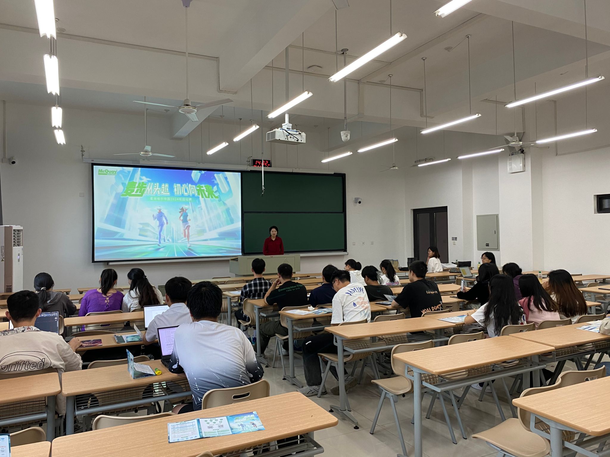 建筑环境与能源应用工程专业2024届毕业生。麦克维尔集团招聘主管陈东文就公司发展历程、企业文化、人才培养、招聘需求等方面进行介绍。活动现场气氛热烈,企业耐心为同学们答疑解惑。随后,同学们进入笔试、面试环节。
