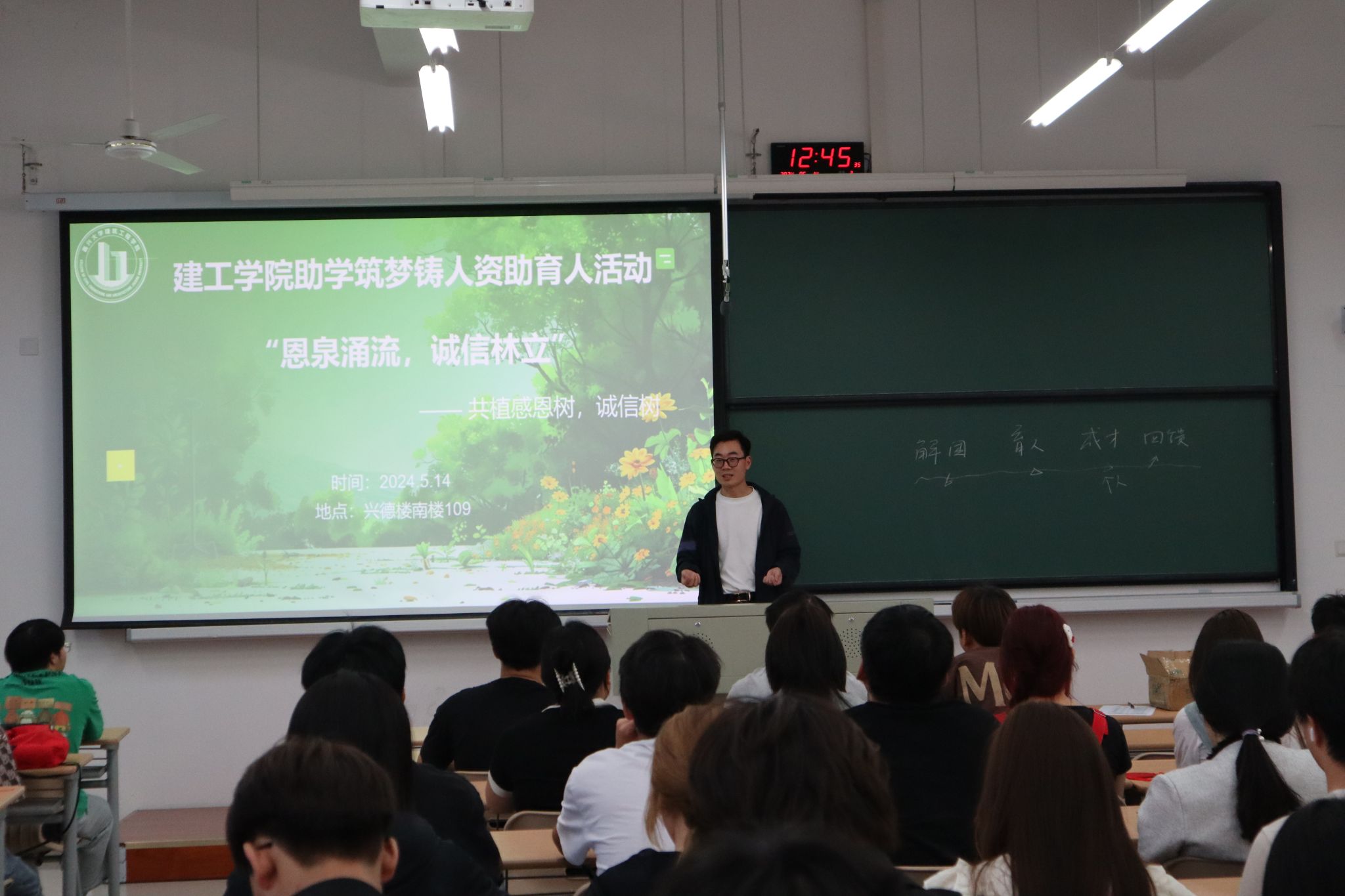 为更好地培养受资助学生感恩意识和自强自立精神,促进家庭经济困难学生健康成长成才, 2024年5月14日,建工学院在兴德楼南楼109教室开展 “助学、筑梦、铸人”主题教育座谈会。建工学院全体资助对象参加会议,会议由庄峰老师主持。