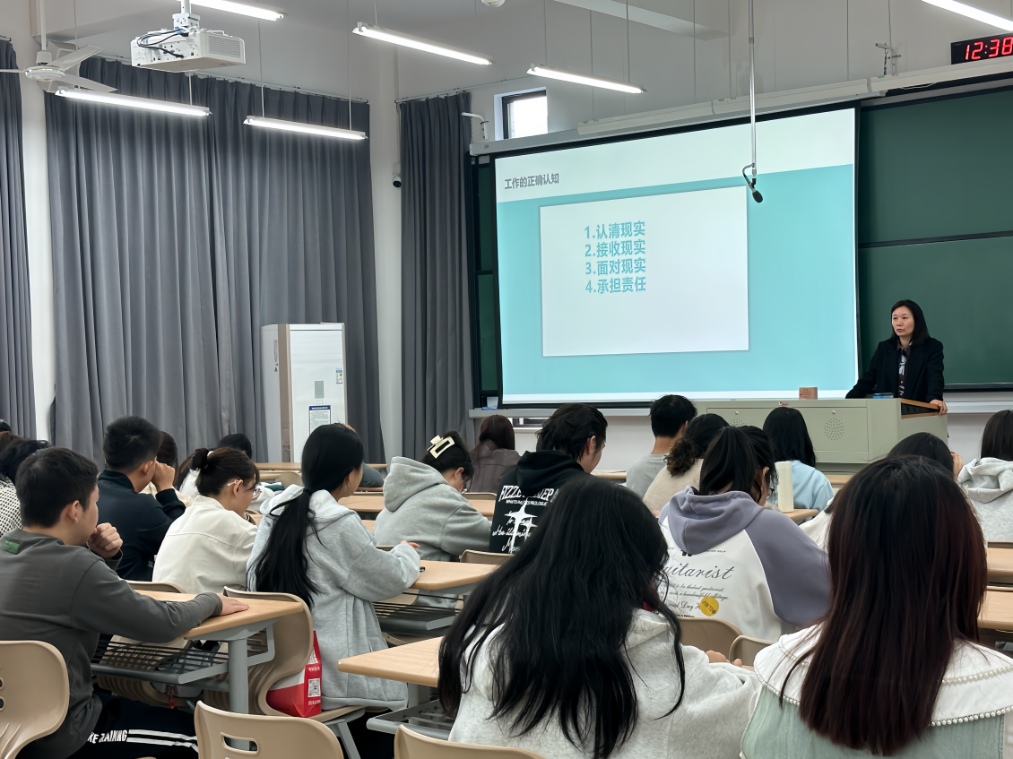 刘老师结合大学生常见的心理问题、容易出现心理问题的四个时期、工作方法与技巧、突发情况反馈机制等方面为同学们进行了业务培训,并介绍了学校心理健康中心及如何预约咨询。