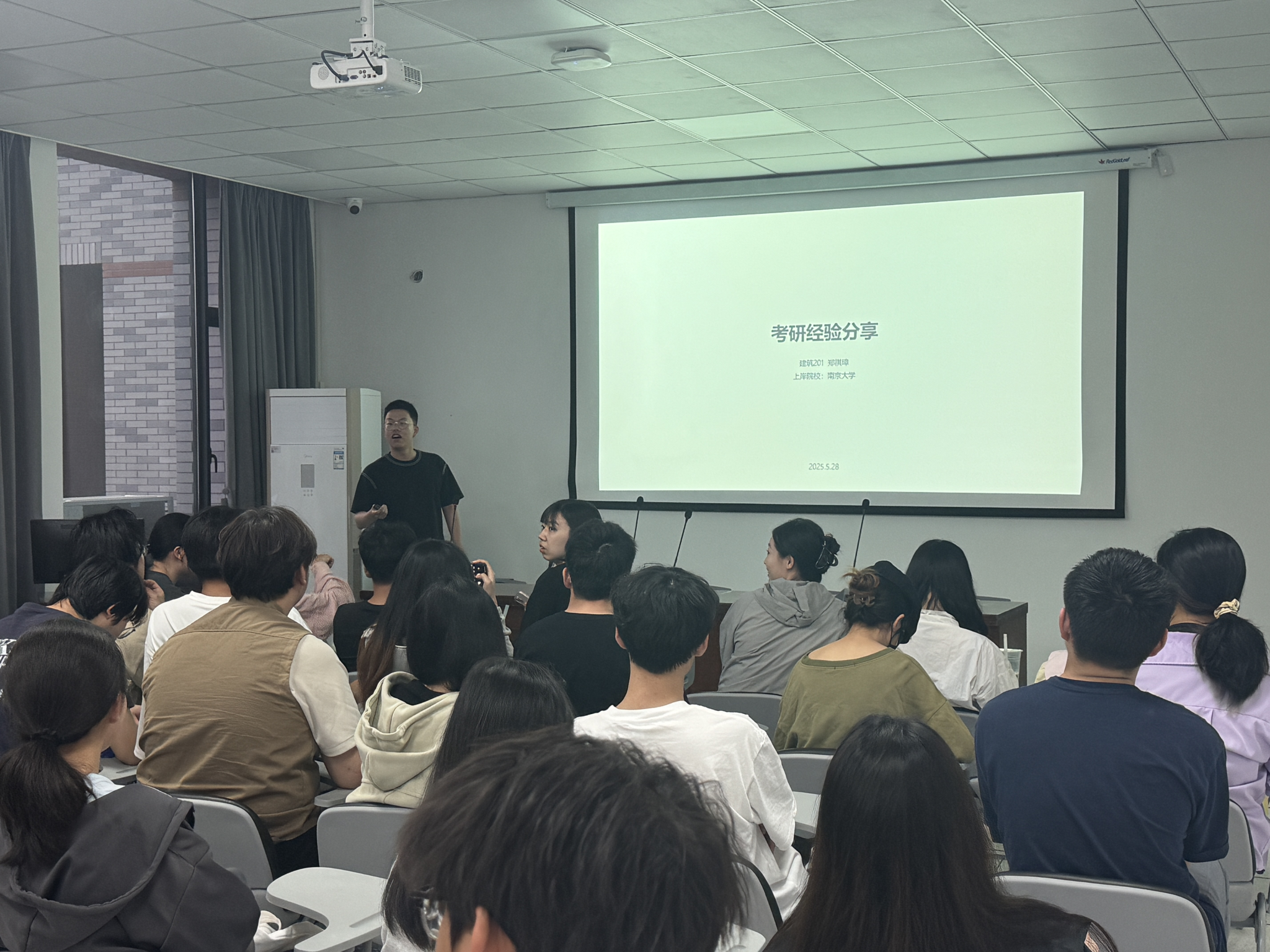举办了2025届建筑学优秀毕业生经验分享会。此次活动旨在为建筑学专业学子未来发展提供指引,特别邀请了在考研、考公、留学不同领域取得优异成绩的2025届毕业生郑祺璋、韩悦、季文韬、李丽霞四位同学进行分享。活动吸引了70余名建筑学专业学子参加,建筑系副主任满姗老师主持活动。