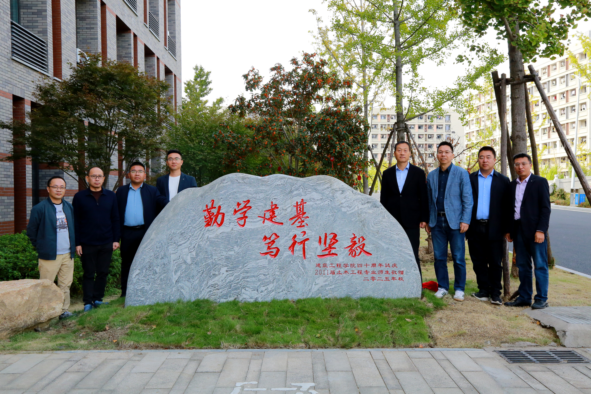 本次捐赠活动由土木2011届校友自发组织筹资。纪念石的落成,为学院四十年院庆系列活动拉开温情序幕,亦成为彰显建工精神、凝聚校友力量的重要象征。