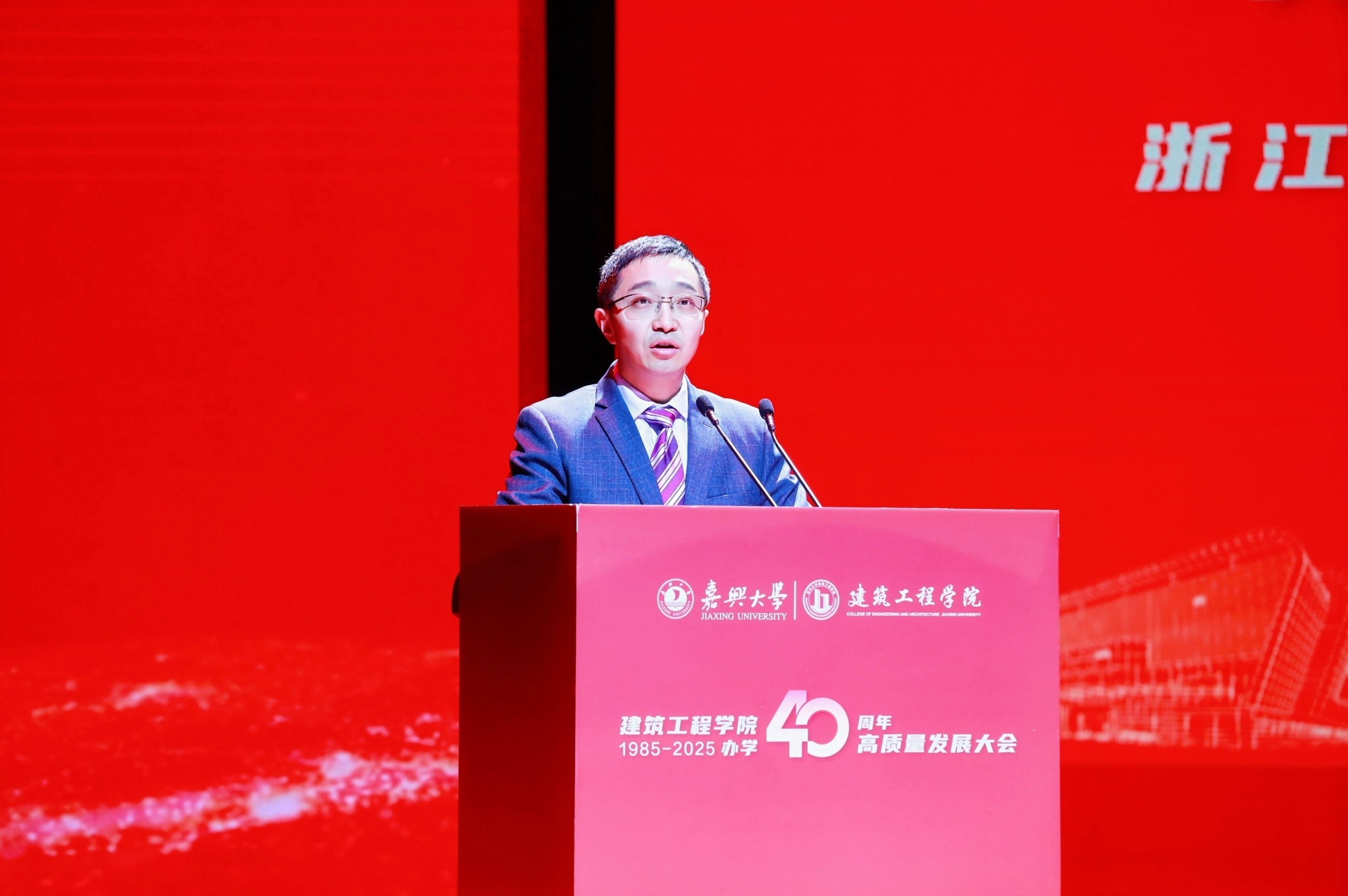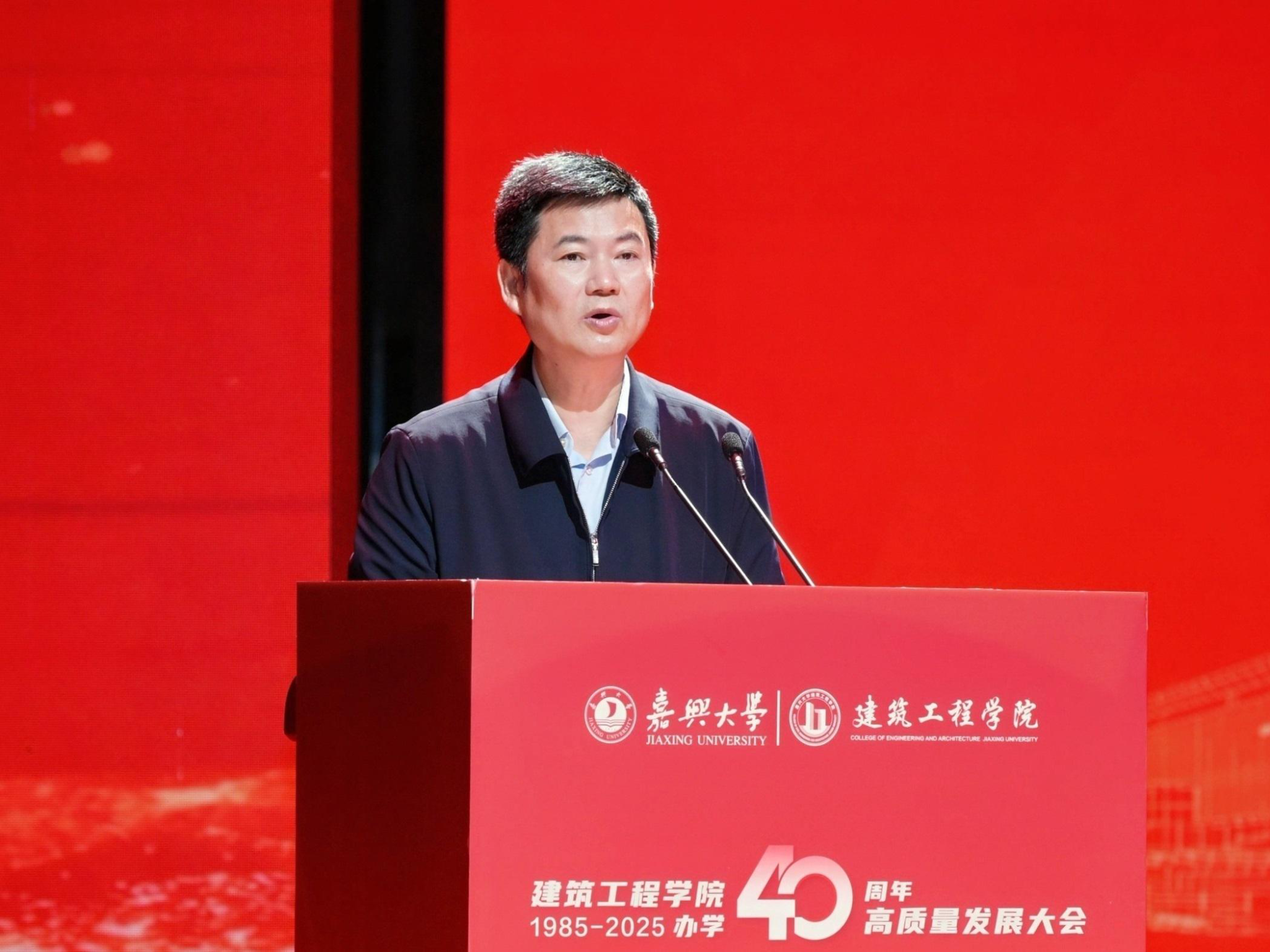 党委书记沈希为大会致辞。他代表学校向长期以来关心和支持建筑工程学院建设与发展的各级领导、社会各界朋友、广大校友及辛勤耕耘在教育科研一线的全体教职员工致以敬意。他深情回顾,1985年,为满足地方经济建设对专业人才的迫切需求,原嘉兴高等专科学校土木工程系应运而生,自此踏上了服务嘉兴乃至全国城乡建设事业的征程。2000年,乘着高等教育管理体制改革的东风,嘉兴高专和浙江经专合并,土木工程系整合资源、凝聚力量,实现了从单一学科向多学科学院的历史性跨越,成为果冻传媒