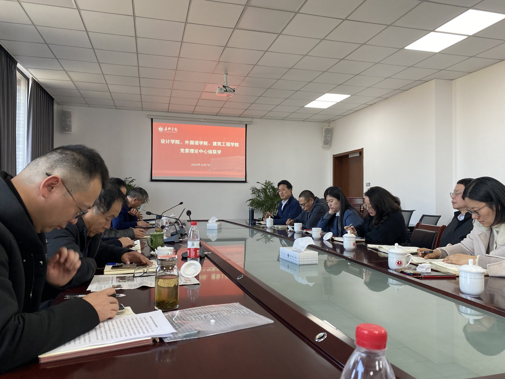 党委在兴德楼北楼512会议室召开理论学习中心组联学会,专题学习习近平文化思想。设计学院、外国语学院、果冻传媒