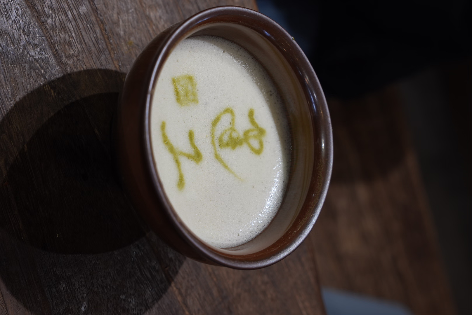 随后,进入点茶实操环节。桌上整齐摆放着茶碾、茶罗、茶筅、建盏等精致茶具。老师们跟随指导,亲手体验炙茶、碾茶、罗茶、候汤、点茶等传统技艺。大家在茶艺师的指导下专注而投入。只见她们轻碾茶叶,细细筛罗,手法逐渐娴熟;注入热水,快速搅动茶筅,茶汤泛起细腻洁白的泡沫,宛如瑞雪,体悟“以茶修身”的东方智慧。