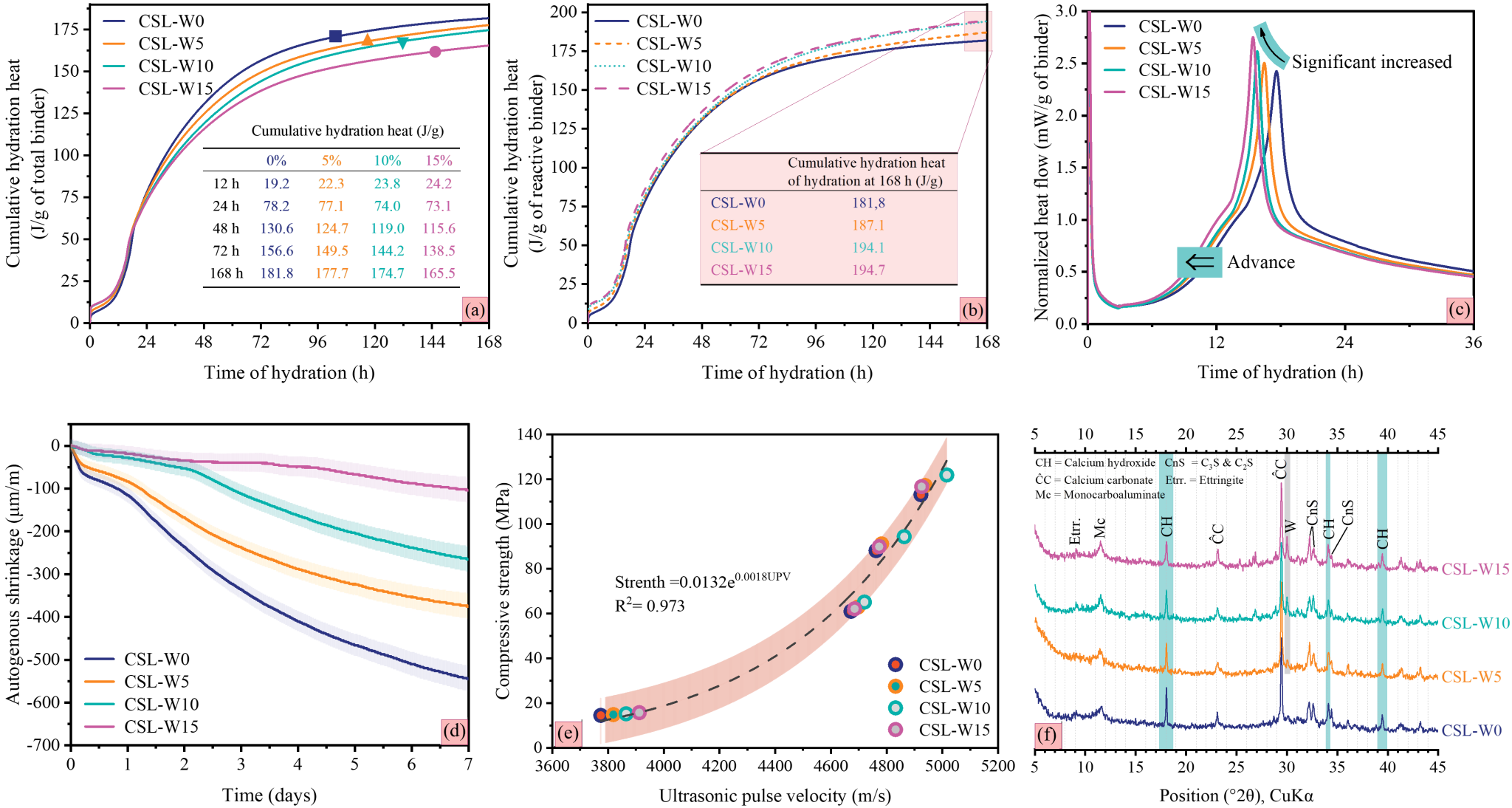 水泥-矿渣-石灰石(CSL)混凝土是一种新型三元胶凝体系,但其在超高性能混凝土(UHPC)中的应用仍有待深入研究,尤其是在自收缩方面。该研究针对水泥-矿渣-石灰石(CSL)三元胶凝体系在超高性能混凝土(UHPC)中的应用展开系统研究,重点探讨了硅灰石(Wollastonite)在改善自收缩、力学性能和可持续性方面的作用机制。研究发现,适量掺入硅灰石(约10%)可显著降低自收缩率(最高可降低80.9%)、提升抗压和抗折强度,并改善孔隙结构与电阻率,从而增强材料的耐久性。同时,硅灰石通过促进矿渣的火山灰反应和矿渣-石灰石间的协同作用,减少了氢氧化钙生成、增加了碳铝酸盐含量,形成了更加致密的微观结构。值得关注的是,研究还揭示了硅灰石在早期水化过程中的“成核效应”与“微钢筋效应”双重机制:前者加速了早期反应速率,后者通过增强内部约束有效缓解了自收缩。此外,由于硅灰石为天然矿物材料,其应用有助于降低CO₂排放,实现高性能与低碳化的兼顾。该研究从宏观性能—微观结构—可持续性多维度系统揭示了硅灰石在CSL-UHPC体系中的作用机制,为低碳高性能混凝土的设计提供了新的思路,也为绿色建材在高性能建筑领域的推广应用奠定了坚实基础。