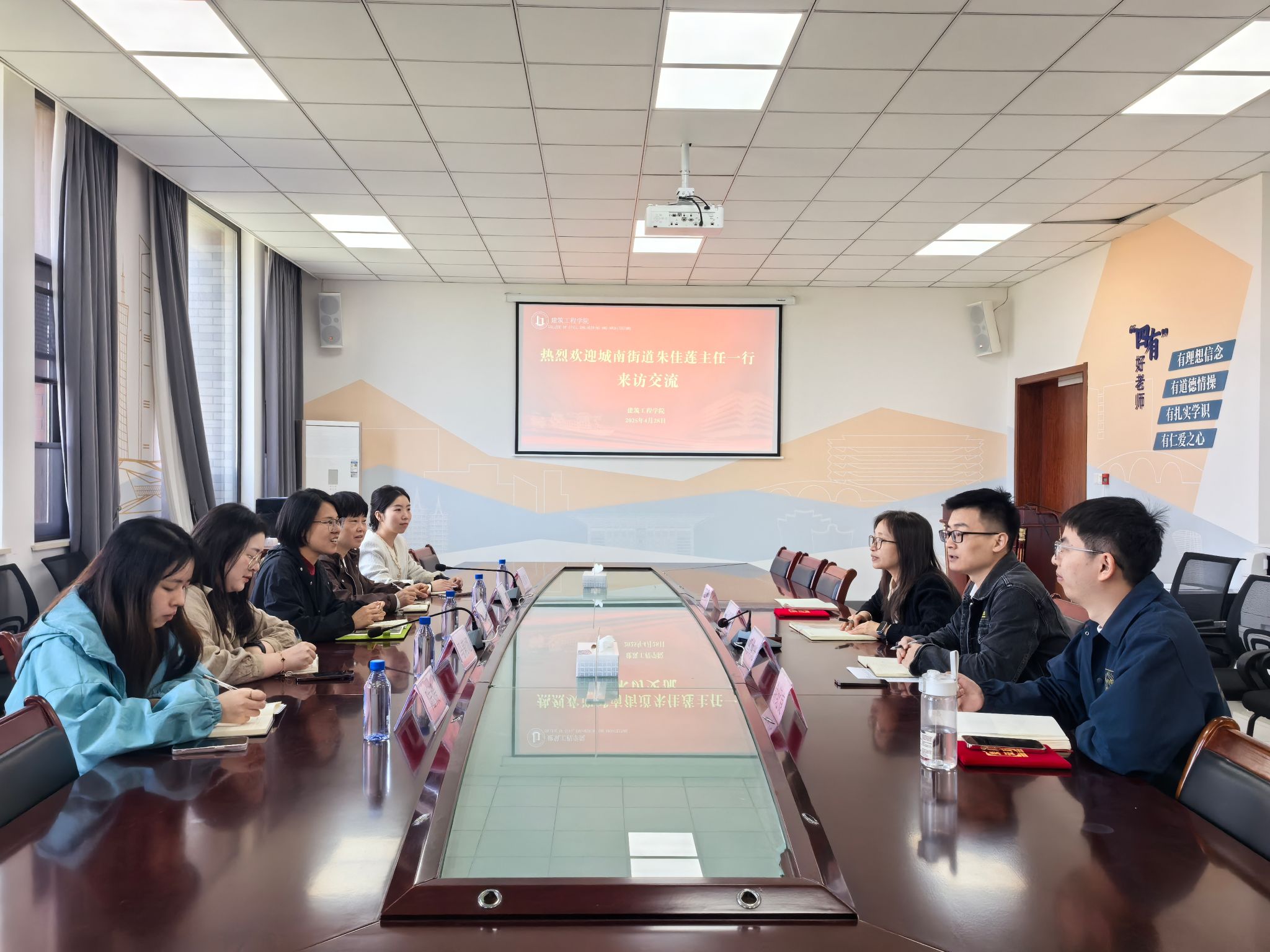 交流座谈。双方围绕学生社会实践基地建设、党建共建资源共享等议题进行深入交流,初步达成合作意向,为后续联动奠定基础。学工办全体辅导员参加座谈。