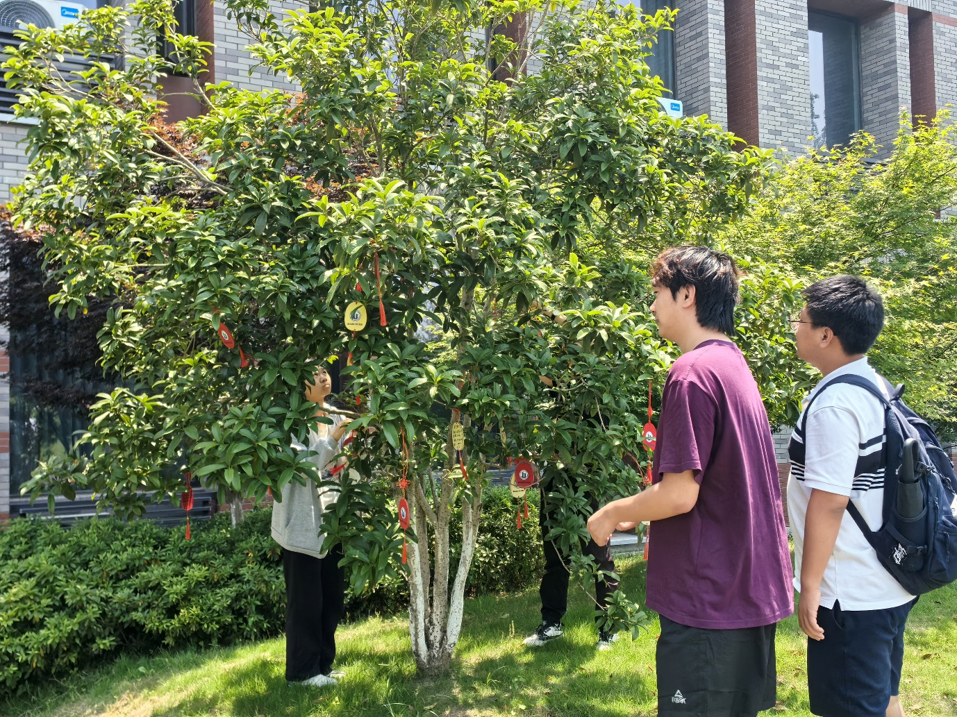 会后,一场富有意义的活动在学院门口温情展开。学生们将写有感恩、诚信、励志话语的标牌小心地系在象征感恩与诚信的树枝上,寓意着“感恩树”与“诚信树”的茁壮成长。这些标牌不仅为校园增添了一抹亮丽的色彩,更以具体而形象的方式让感恩教育深入人心,表达了学生们对未来的自强承诺与坚定信念。