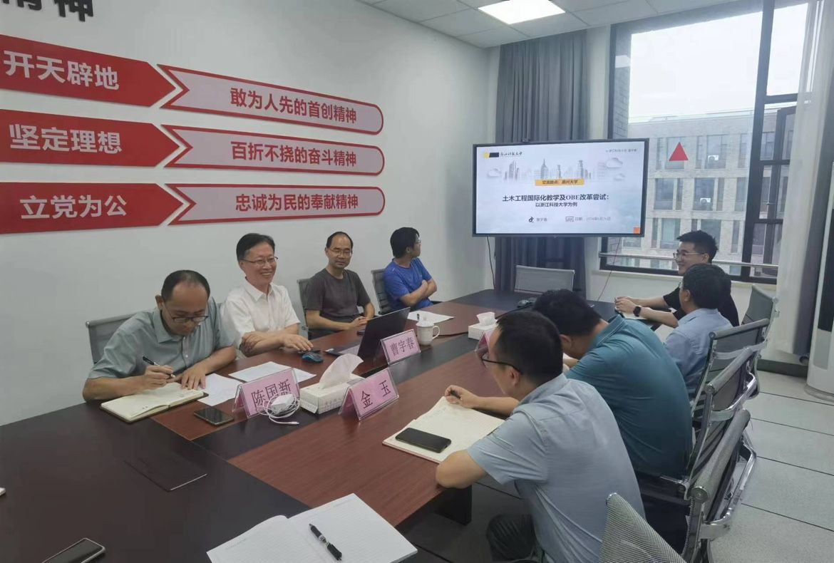 做了题为“土木工程国际化教学及OBE改革尝试-以浙江科技大学为例”的国际化专业及课程建设报告。交流会由土木工程国际化项目负责人陈国新教授主持,土木工程系及工程管理系10余名教师参加。