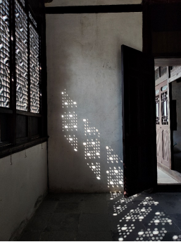 在天井与厅堂间穿梭,仿佛听见一首歌,节奏与韵律明晰,光与影变幻莫测,室内外穿插交错,优雅又安静。有的天井被影壁一分为二,小小的四方天地就演绎出开阔与雅致两个空间。