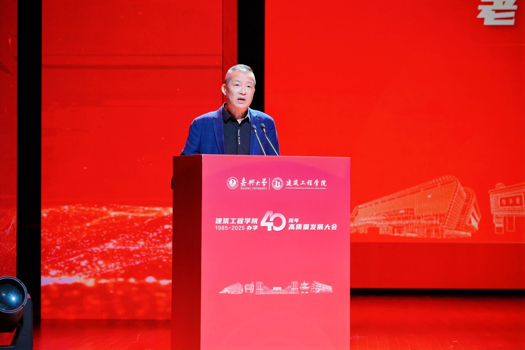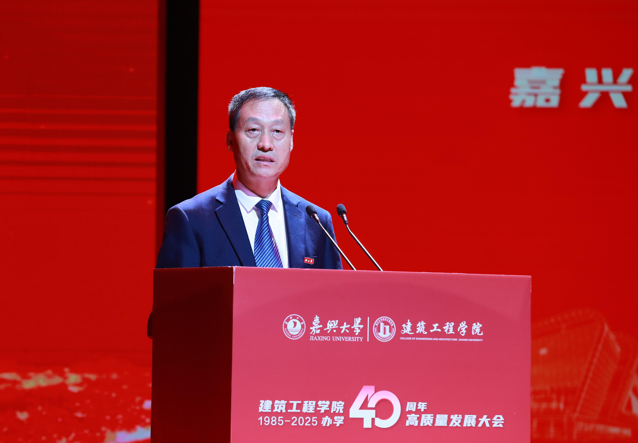 党委书记沈希为大会致辞。他代表学校向长期以来关心和支持建筑工程学院建设与发展的各级领导、社会各界朋友、广大校友及辛勤耕耘在教育科研一线的全体教职员工致以敬意。他深情回顾,1985年,为满足地方经济建设对专业人才的迫切需求,原嘉兴高等专科学校土木工程系应运而生,自此踏上了服务嘉兴乃至全国城乡建设事业的征程。2000年,乘着高等教育管理体制改革的东风,嘉兴高专和浙江经专合并,土木工程系整合资源、凝聚力量,实现了从单一学科向多学科学院的历史性跨越,成为果冻传媒