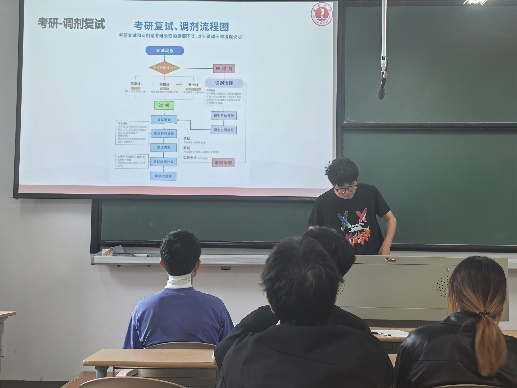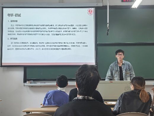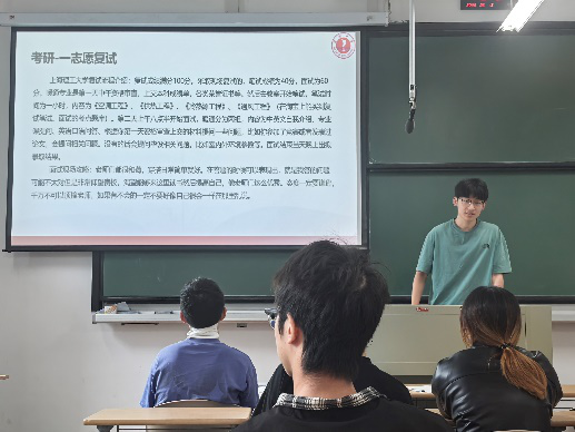 作为活动重头戏,4位成功上岸的建环学子从不同维度分享了考研实战经验。曹鸿鹏同学以"26考研时间规划"为主题,梳理了从信息收集、院校选择到初试复试的全流程节点,提醒"提前1年启动准备,关注目标院校报录比与历年真题";许杨晨同学聚焦初试备考,结合《传热学》《工程热力学》等建环专业核心科目,分阶段讲解复习策略:"基础阶段重教材推导,强化阶段抓高频考点,冲刺阶段练真题套卷",并推荐了《工程热力学学习指导》《传热学典型题解析》等优质教辅;邹东晋同学以"上海理工大学复试经验"为例,详解复试准备技巧:"提前联系导师、整理科研/竞赛成果、模拟面试演练是关键,复试中不仅要展示专业知识,更要体现科研潜力与学习热情";肖祥同学则针对调剂环节,分享了自己的"调剂信息获取—院校筛选—材料准备"全流程,提醒"调剂要早动手,关注B区院校与冷门方向,主动联系招生办获取最新动态"。活动尾声,四位同学都强调:"考研不仅是知识的较量,更是心态的比拼。合理作息、定期锻炼是保持状态的基础,坚持到底的信念则是通往成功的关键。"